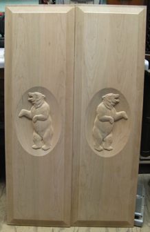 AllCarve.com carved the two bears in supplied wood pieces. All the rest was done by Holt Construction. Very nice work. This is a 3D sign. | |
